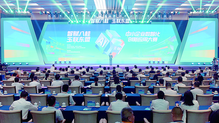 8月22日,以“智赋八桂 玉联东盟”为主题的中小企业数智化创新应用大赛启动仪式在南宁举行。 (本报记者 蒋金泰 摄)