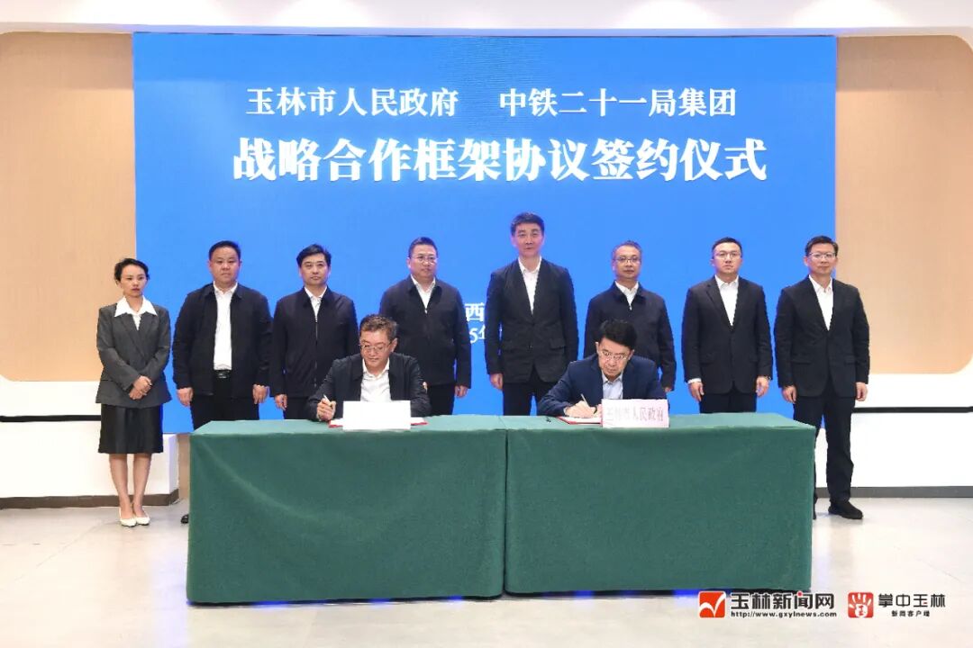 11月3日,玉林市人民政府与中铁二十一局集团签署战略合作框架协议。市委书记王琛与中铁二十一局集团党委书记汪新立一行座谈并见证签约。市委副书记邓国忠参加。